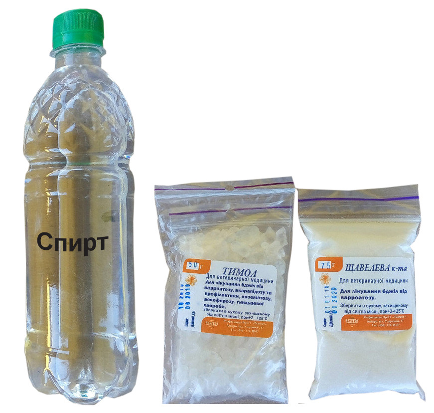 В комплект входить: спирт, тимол, щавлевая кислота.